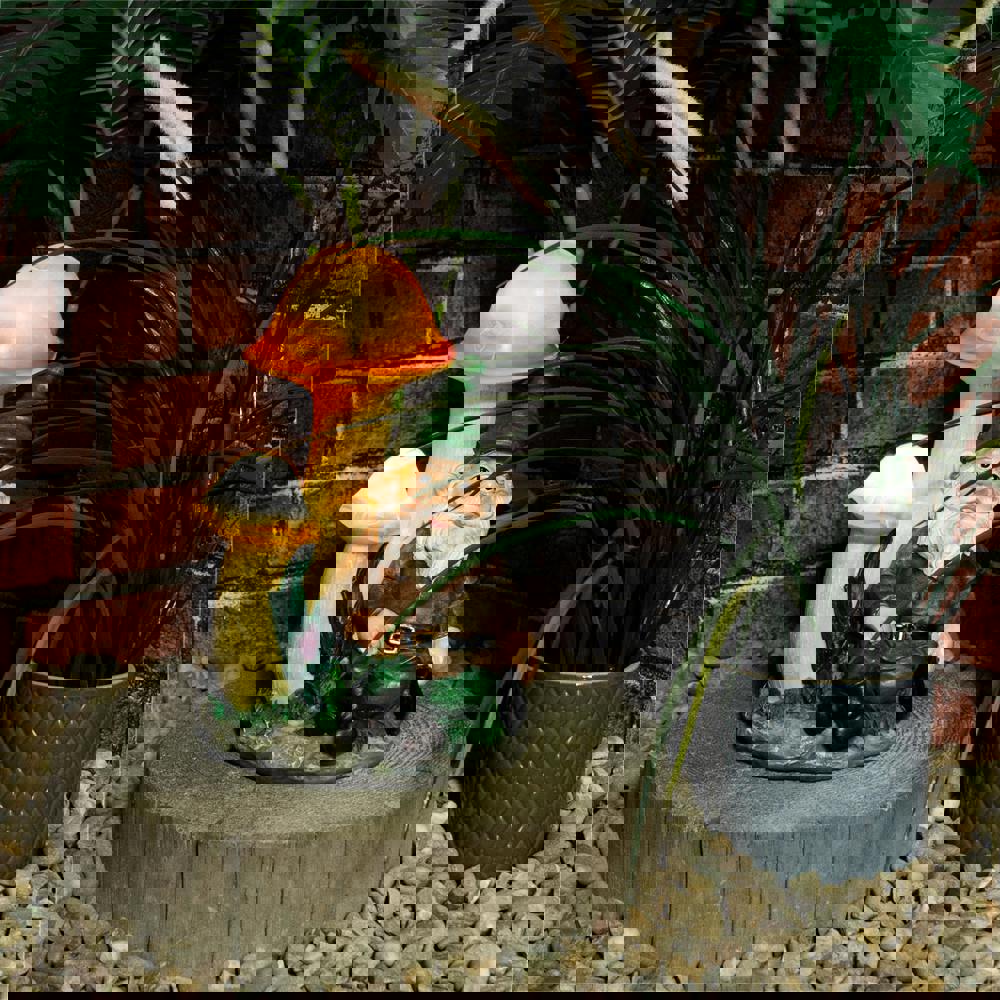 My name is Gnomeo, I am a handsome and quirky solar garden ornament, I'm a little bit special thanks to my solar light which will brighten up your garden and lawn at night, I am so economical, my light charges up during the day by absorbing sunlight, aren't I clever. I'm a very charming ornament painted in beautiful, vibrant colours and I will enhance the look of any garden whether it be day or night, you will be the envy of your neighbours thanks to me. My body is made from durable resin making me waterproof and able to withstand harsh weather when placed outdoors, I really don't mind the rain. I don't know if you know this but I'm part of a collection, check out my family members; Gnomette, Gianna, Gabriella and Giselle