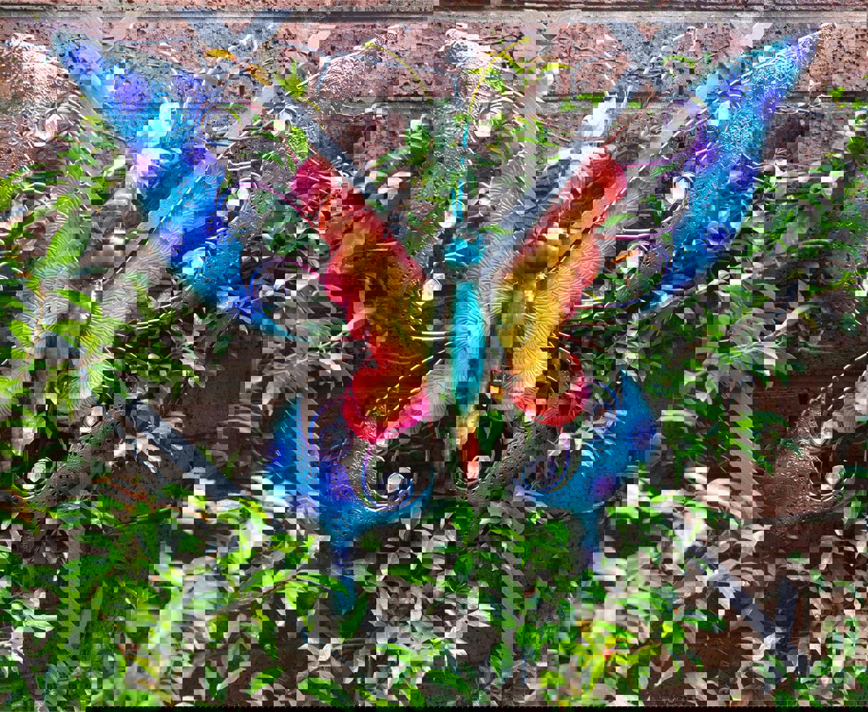 Add a tropical vibe to your garden with this vibrantly coloured butterfly wall ornament. The butterfly can easily be secured to your outdoor walls with the supplied fixings and the built in hanging hole. The butterfly could even be displayed in your home to create a feature wall and provide a pop of colour. Made from durable metal to ensure it can withstand even the harshest of weather conditions.