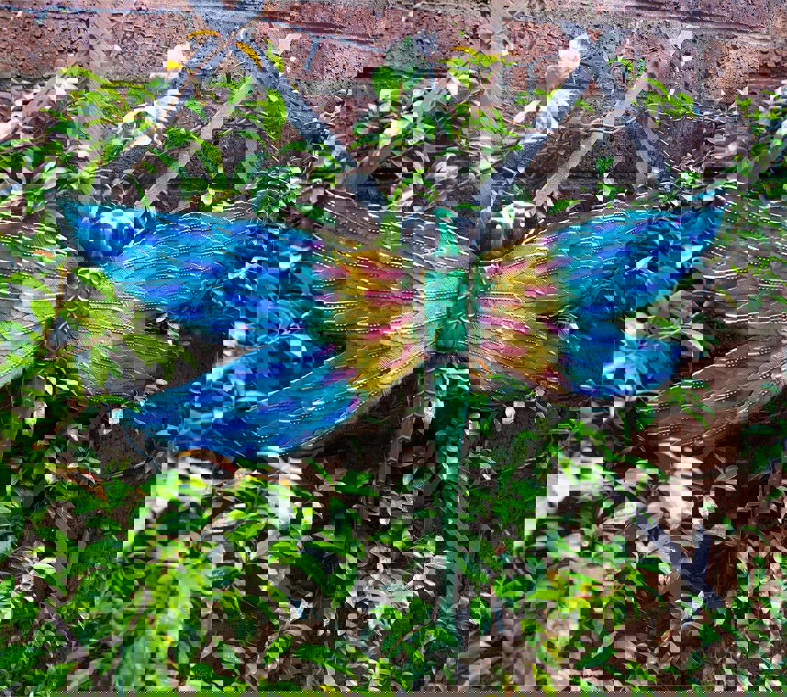 Add a tropical vibe to your garden with this vibrantly coloured dragonfly wall ornament. The dragonfly can easily be secured to your outdoor walls with the supplied fixings and the built in hanging hole. The dragonfly could even be displayed in your home to create a feature wall and provide a pop of colour. Made from durable metal to ensure it can withstand even the harshest of weather conditions.