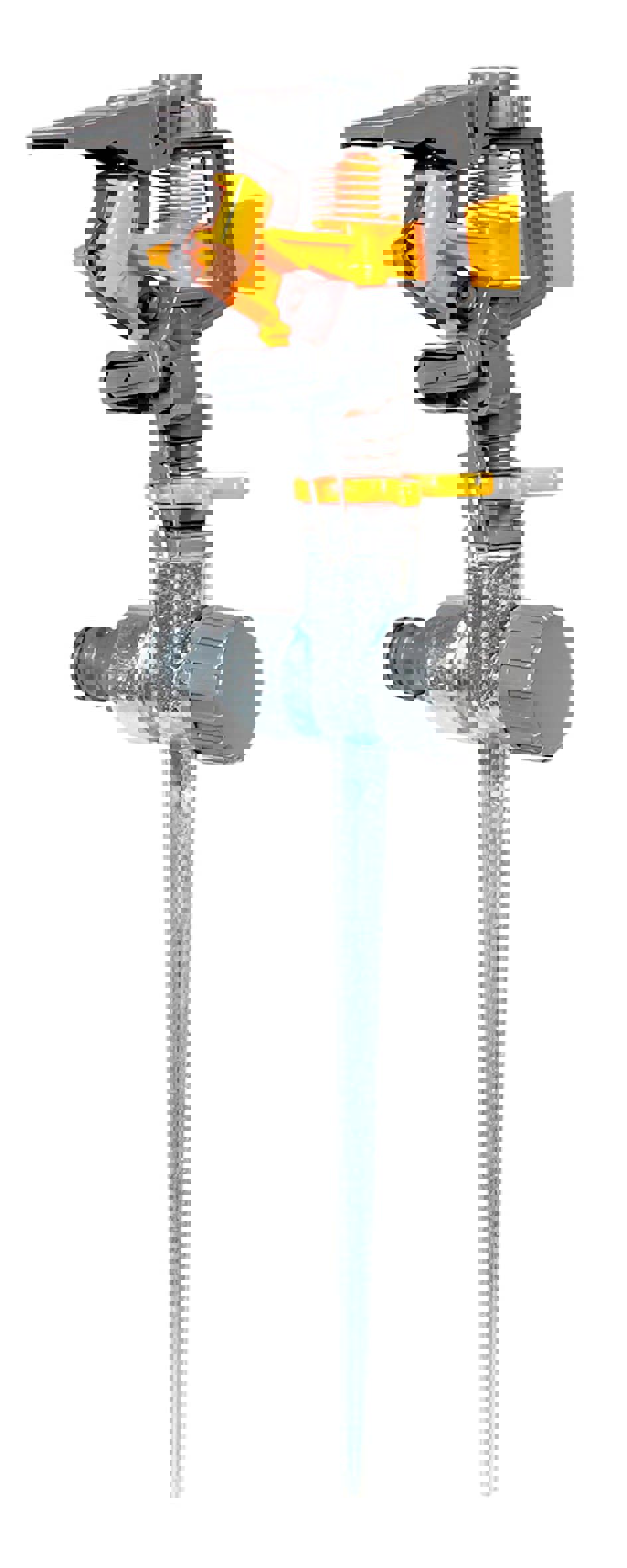 The impulse or impact sprinkler gives you full control over the water coverage, you can change the width of the spray by adjusting the trip collar. Full or part circle operation is possible, if full 360 degree coverage is required simply flip up the trip lever. The water pattern can also be adjusted. The sprinkler covers up to a maximum range of 24 metres making it ideal for even the biggest of gardens. It is easy to create an in-line sprinkler system by unscrewing the cap on the side allowing you to connect a female 3/4 inch threaded connector and in turn connecting a further length of hose pipe, this method allows you to create a row of in-line sprinklers without the need for a secondary water source. The quick click connection makes this sprinkler compatible with most leading brands of hose connectors. Advantages of this type of sprinkler include uniformity of coverage, resistance to sand and grit so fewer blockages and it works well in homes with lower water pressure. The maximum coverage area in a home with 4 bar water pressure is186m2.
