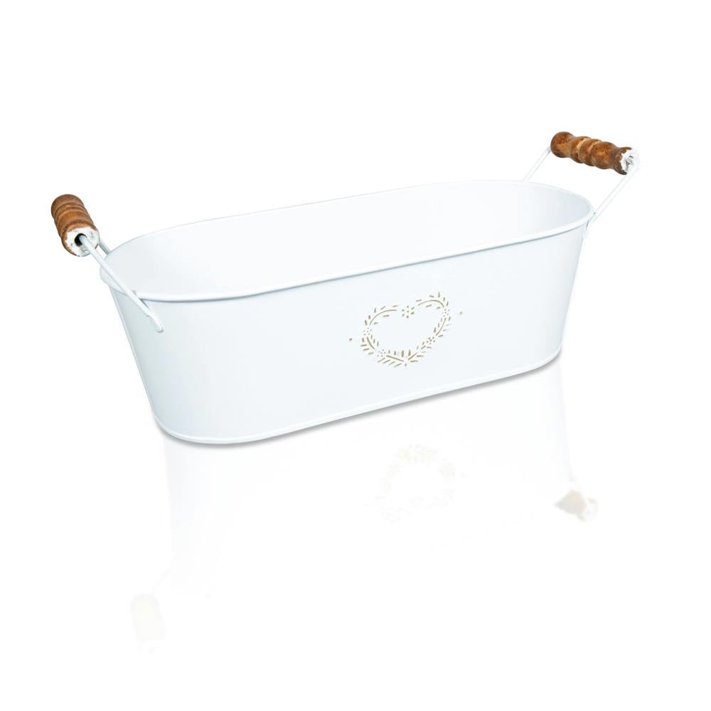The St Helens Home and Garden Oval Metal Planter with Handles in White is the perfect addition to any indoor or outdoor space. Crafted with robust metal, this planter is designed to be sturdy and durable, ensuring that your plants stay secure and healthy. The oval shape of this planter adds a touch of sophistication and elegance to any decor, while the white finish creates a clean and modern look. The two handles on either side of the planter make it easy to move from one location to another, allowing you to rearrange your plants whenever you want. This planter is ideal for a variety of plants, including flowers, herbs, and small shrubs. It is also perfect for creating a beautiful centrepiece for your dining table or as a decorative accent on a mantel or shelf. Whether you are an experienced gardener or just starting out, the St Helens Home and Garden Oval Metal Planter with Handles in White is a must-have for any home or garden enthusiast. Its sleek and stylish design makes it a perfect choice for anyone looking to add a touch of elegance to their space while providing a functional and practical planter for their favourite plants.