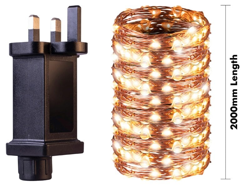St. Helens Home and Garden Copper Wire, Plug-in 200 LED Fairy String Light With Controller. For Indoor and Outdoor use. Ideal for use at Christmas, Parties, Weddings and for General Decoration.