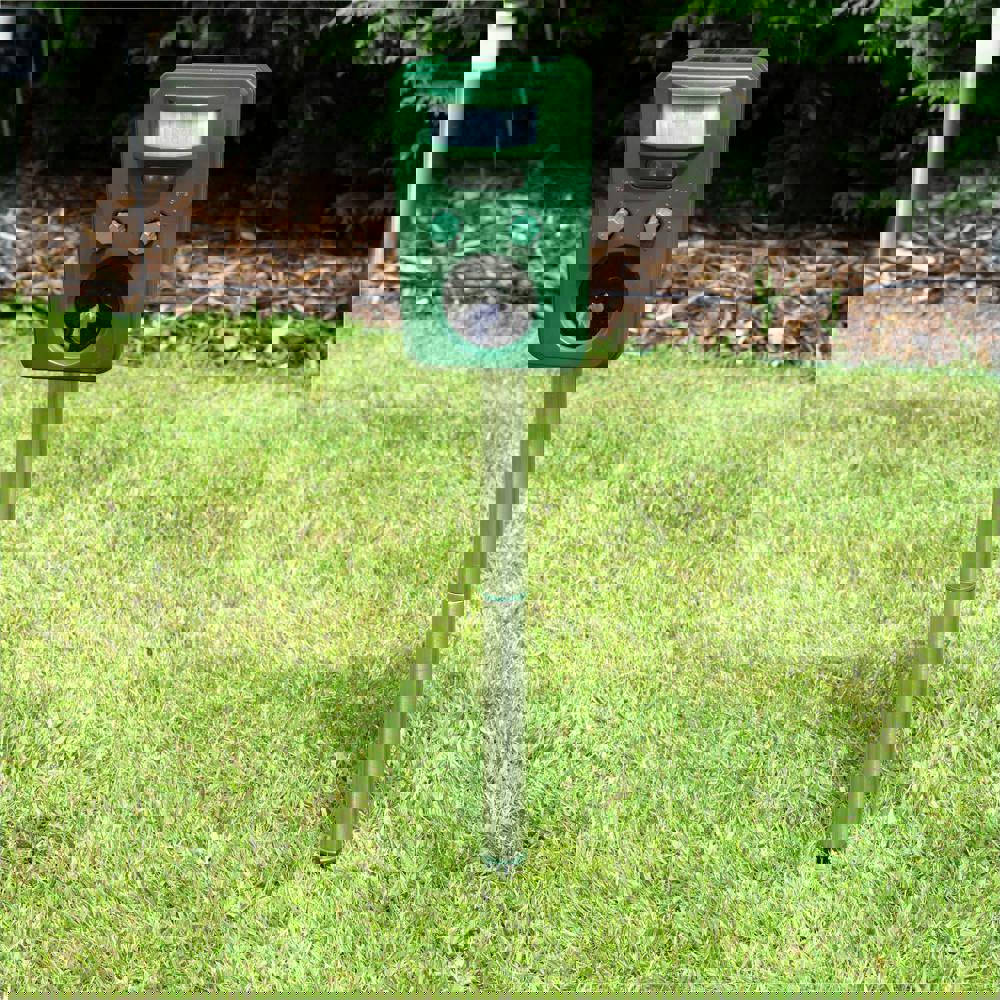 The Ultrasonic Animal Repeller is the humane way to keep unwanted animals such as dogs, cats, foxes, squirrels, birds and rodents out of your garden, no need for chemicals or poisons. The Repeller emits a high frequency sound that will cause discomfort to and therefore drive away unwanted pests, the sound is not however detectable to the human ear. An LED light will also flash. The motion sensor will detect movement up to 8 metres away and the level of sensitivity and the frequency can be automatically set using dials on the unit. The Repeller is charged during daylight hours using free energy from the sun. Alternatively for shaded areas there is a 4. 5Vdc Input for use with a power supply. The unit is supplies with a ground stake and tether fixing kit.