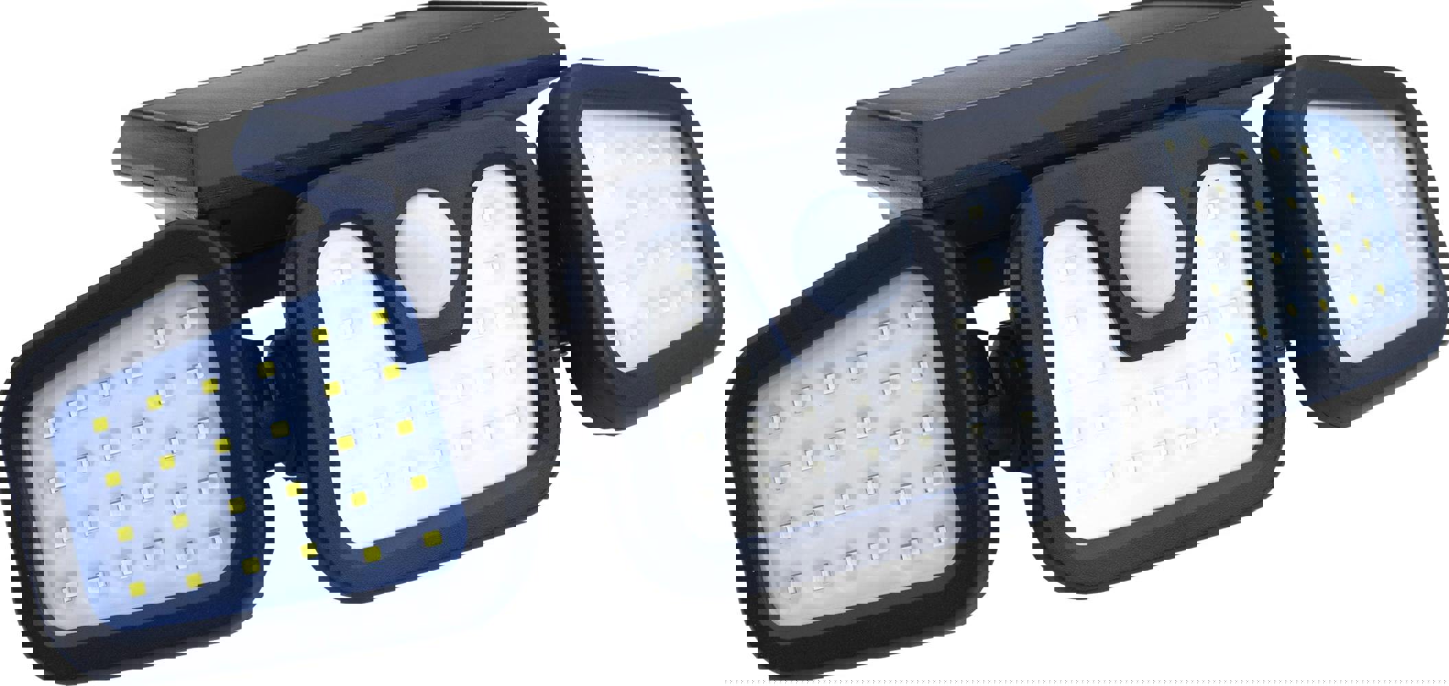 The St Helens Home and Garden solar powered motion sensor security light has 3 heads and gives a 400 lumen illumination. The outer heads have 26 LEDs and the middle head has 22. The outer heads can be angled to focus light wherever it is needed. The light detects motion up to 3m away at a 120 degree angle and will illuminate for 20 seconds. The light can be set to illuminate in low light or full light. The unit is powered by a built in 3,000mA battery. Manufactured from ABS plastic. The light is fitted with a 5. 5v 1. 5W polysilicon solar panel. The light has 3 pre drilled holes in the solar panel for easy wall mounting.