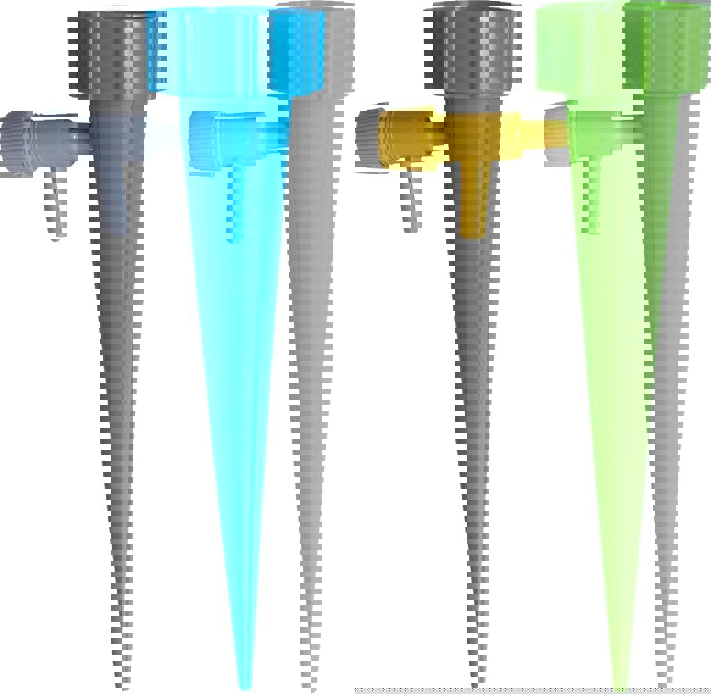 The watering spike from St Helens Home Garden ensures that your plants receive regular water over a period of time, the speed of the water flow can be set using the adjustable valve, the flow rate can be tailored to suit the watering needs of individual plants as some need more water than others. This style of sustained watering is better for your plants than sporadic watering. Simply push the spike into the soil surrounding your plant, attach a bottle to the top of the spike (a large variety of water and fizzy drink bottles will work) cut a hole in the top of the bottle so that you can pour in the water, open the valve and set it to the desired flow rate. This handy device is perfect for watering your plants when you go on holiday, are away on business, or even if you simply do not have the time to water your house plants on a daily basis. This simple automatic watering device can be used indoors or outdoors, on potted plants and hanging baskets.
