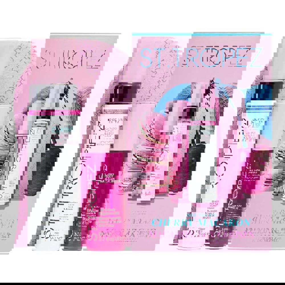 St Tropez Cherry Macaron Kit Set brings the brand’s iconic classic tan together with a Cherry Macaron fragrance, blending notes of juicy cherry, bright white florals and warm vanilla. Designed to elevate your self-tan routine, this exclusive set pairs a signature tanning mousse with a limited edition pink mitt and a hair and body fragrance mist for a more considered finish.