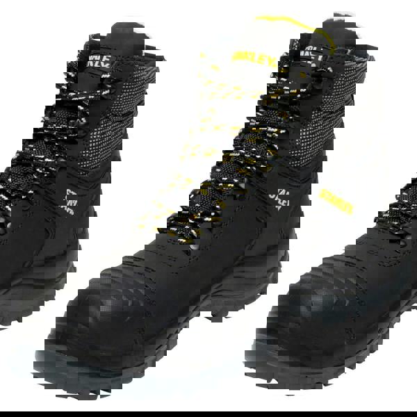 The Stanley Richmond safety boot are fully waterproof with a steel toe and midsole. The waterproof midsole ensures your feet stay dry and warm at all times. The leather upper waterproof and breathable mid cut steel toe safety boot. 4 barrel and 2 ski hook eyelet lacing. Rubber toe guard to give maximum protection. Lightweight pu outsole.