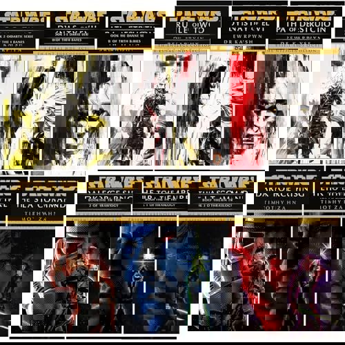 This six-book set brings together two Star Wars series by Timothy Zahn and Drew Karpyshyn: the Thrawn Trilogy and the Darth Bane trilogy. The Thrawn novels open five years after the Rebel Alliance’s victory over the Death Star, with the remnants of the Imperial Starfleet driven to a distant corner of the galaxy. Princess Leia and Han Solo are married and expecting twins, while Luke Skywalker has become the first in a long-awaited line of Jedi Knights.