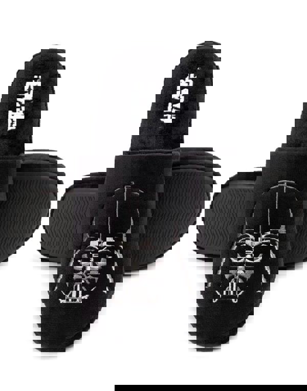 On the inner sole of the slipper features the iconic franchise's logo, contrasting perfectly against the black polyester material