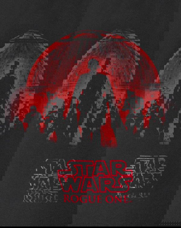 Enjoy the new Star Wars episode in style with this official Star Wars Rogue One Foil t-shirt! This men's t-shirt features an awesome print across the front showcasing artwork from Rogue One; this design features the iconic Death Star in vivid red along with characters from the new Star Wars movie in a cool silhouette style