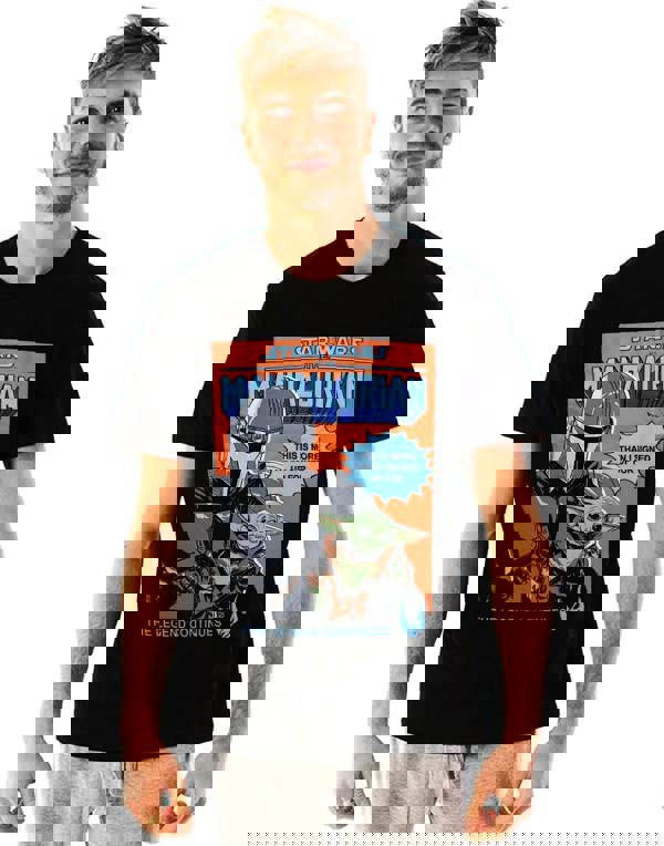 The Mandalorian poster shirt for adults comes with a stylish black standard fit, perfect for chilling out and watching your favourite series, The Mandalorian! Showcased across the front of the Star Wars tee for adults is a bold and colourful Mandalorian poster featuring the Mandalorian and iconic Baby Yoda with a quote 'THIS IS MORE THAN I SIGNED UP FOR' contrasted against the black Baby Yoda top