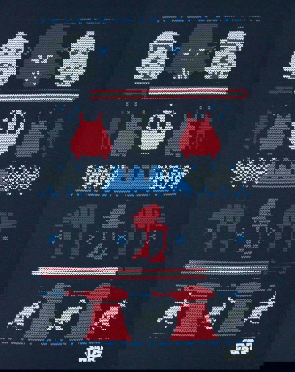 Made with a quality feel and finish, this t-shirt not only feels good but looks great too! The print across the t-shirt is inspired by the traditional knitting techniques favored amongst the Christmas Jumper wearing scene; the fun design sees Darth Vader, stormtroopers, and Death Star motifs in a red, white, and blue colour combination
