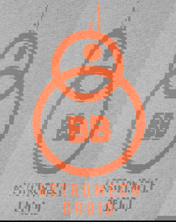 The design across the front of the t-shirt sees the outline for the BB-8 in vivid orange, along with Astromech Droid in bold letters beneath, set against the grey marl of the t-shirt