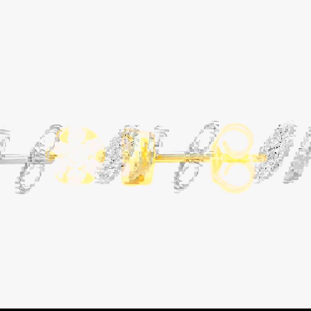 Six cubic zirconia stones form petals and a corolla in these pretty studs. Perfect for adding a subtle shimmer to an outfit, these floral earrings will remain secure all day long, and the inclusion of gold plating will add a brilliant pop of colour.