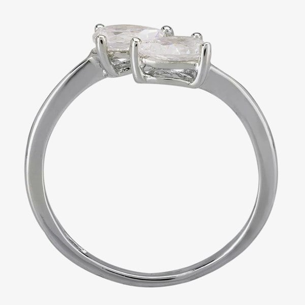 Twin pear-cut cubic zirconia stones in raised head mounts add a touch of shimmer to this handcrafted sterling silver open ring. Rounded for comfort and rigid enough to hold its shape, this costume piece is perfect for shopping trips or nights on the town.