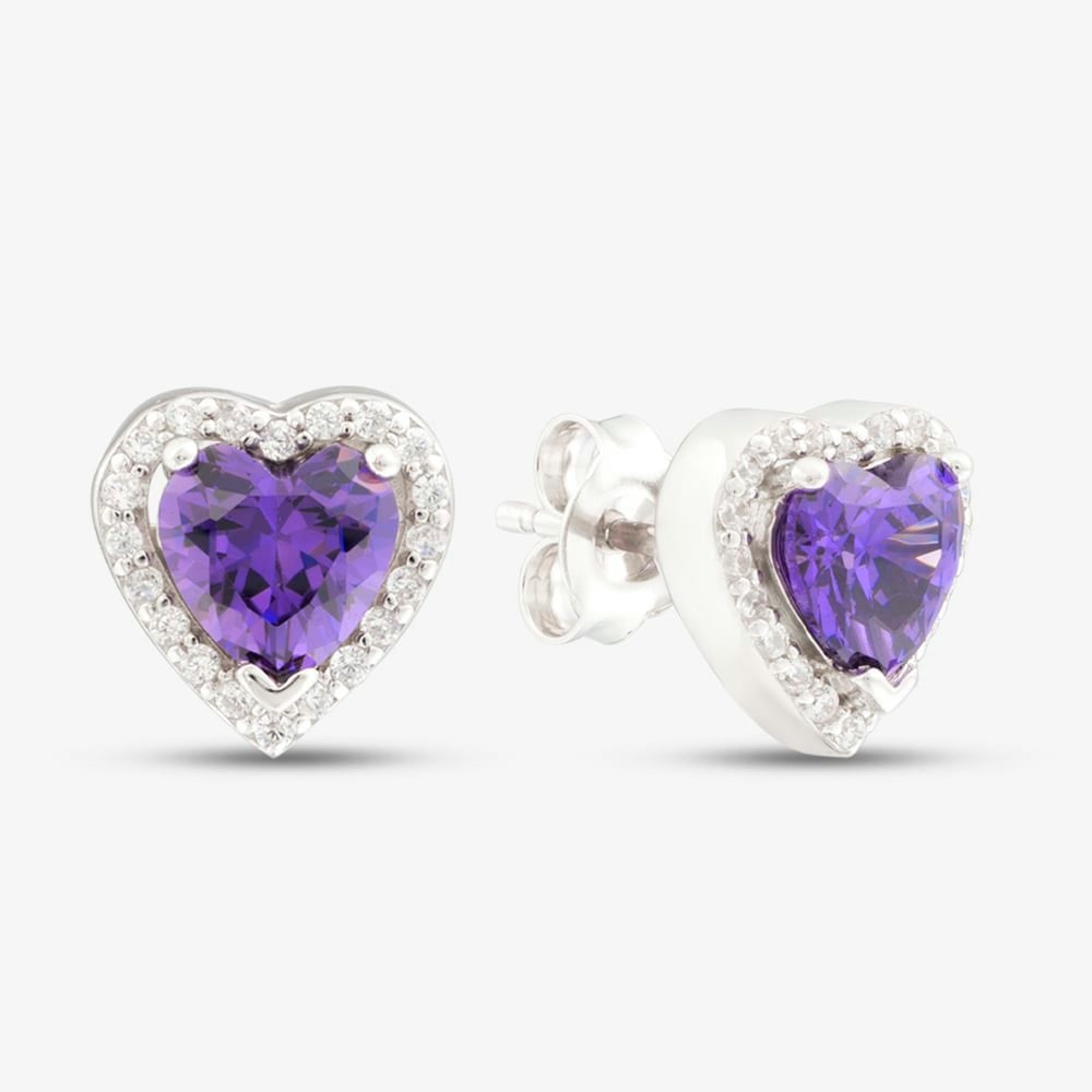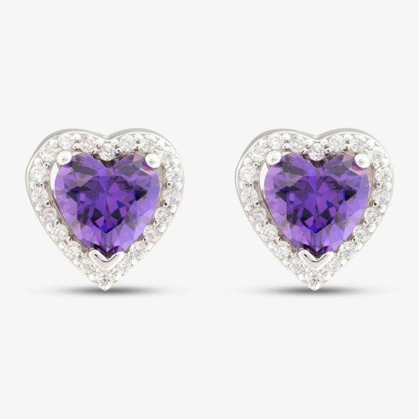 Add a romantic touch to your jewellery collection with these Sterling Silver Purple Cubic Zirconia Heart Halo Cluster Stud Earrings. Featuring a heart-shaped purple cubic zirconia at the centre, surrounded by a halo of sparkling clear stones, these studs offer a charming and elegant look. Set in polished sterling silver, they're perfect for adding a pop of colour and shine to any outfit.