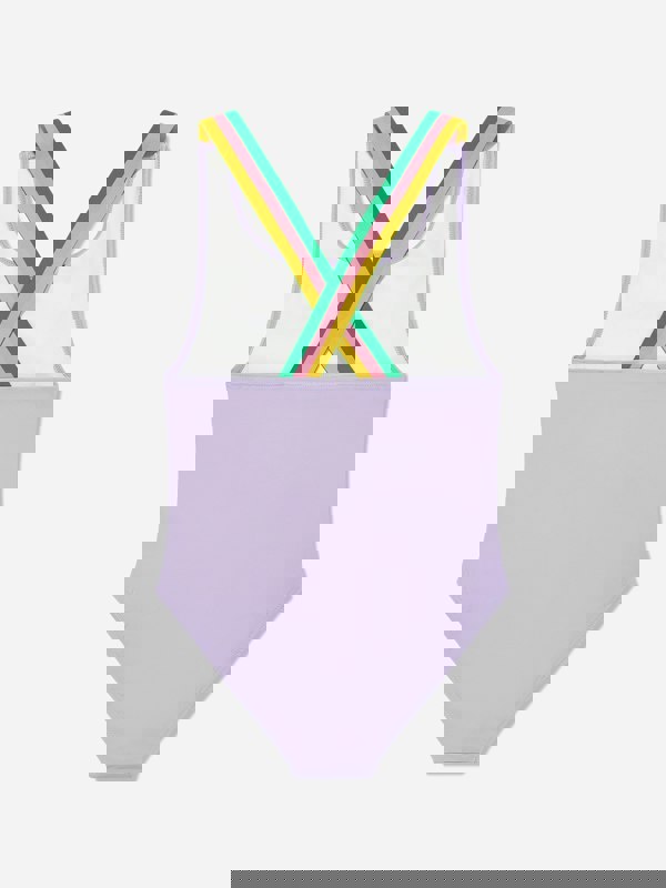 This girls’ swimsuit from Stella McCartney Kids comes in purple with a star motif and fringed detailing. Part of the SS2025 collection, it brings a bold look to swimwear with movement through the fringe trim and an all-over statement design.