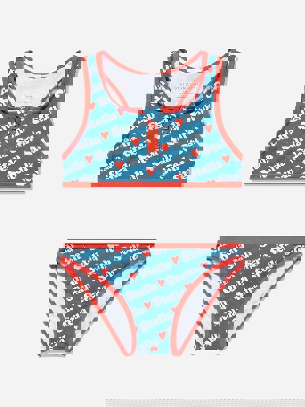 This girls’ bikini from Stella McCartney Kids comes in blue and forms part of the SS2025 collection. A heart logo motif adds a clear graphic detail, keeping the look playful and easy to recognise. Suitable for swimwear rotation, it offers a simple two-piece option for warm-weather days.