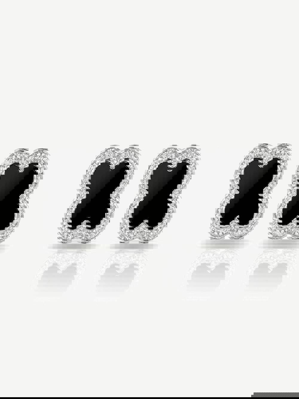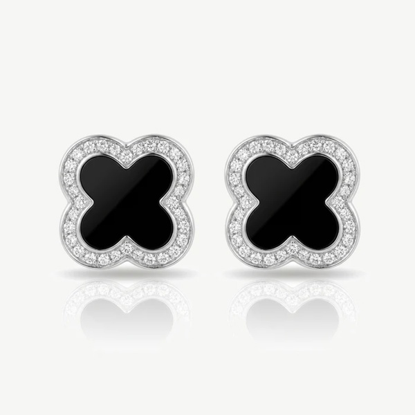 The glossy black enamel centre adds contrast, while the pavé cubic zirconia frame catches the light just enough to feel polished. They’re simple but not boring — the kind of studs that make a basic outfit look more put together without trying.