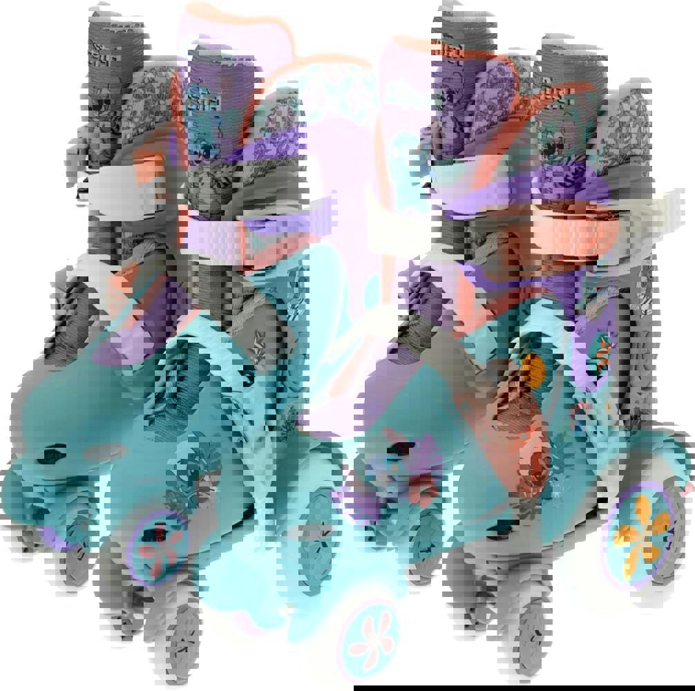 Turn Up The Fun With Stitch Adjustable Big Wheel Skates! Decorated With Beautiful Iconic Stitch Graphics, These Skates Are Vibrant And Fashion-Forward For Any Kid To Look Neat On The Streets. With Durable Pp Shell For Long-Lasting Fun. With Safety In Mind, The Skates Also Feature Durable Rear Brake Block For Swift Stopping While The Pivoting Heel Cuff Flexes With The Foot For Improved Comfort And Support And The The Colourful Sock Keeps Toes Cosy. Ideal For Growing Children, The In-Line Skates Feature Double Ratchet-Adjusting Straps Allowing For Tailor Made Comfort And Secure Fit Across Four Sizes 9J-12J. Skate Strong!