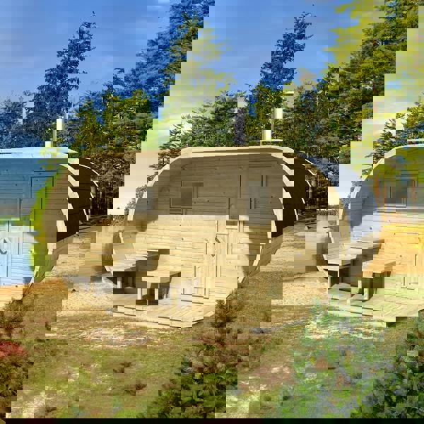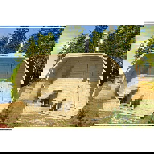 Designed for a distinctive garden setting, the Stjarna Oval Sauna combines an oval silhouette with a practical layout that includes a dressing room and sauna area, plus a veranda to the front. With space for up to 7 people, it’s well suited to shared sessions with family and friends, while still offering a considered, private feel at home.