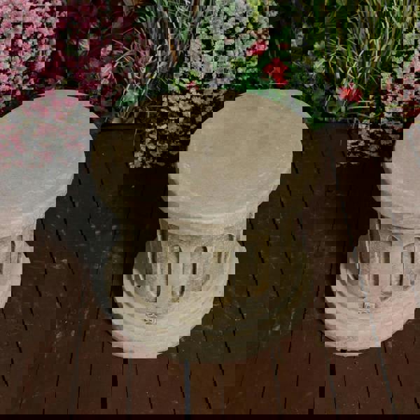 Add timeless elegance and versatility to your garden or home with this Fluted Round Column Pedestal. Crafted from durable stone cast, this low-profile column features classical fluted detailing and a smooth circular top, perfect for displaying urns, statues, or planters. Its solid construction and architectural charm make it equally suitable as a stand-alone accent piece or as a functional base for your favourite outdoor décor.
