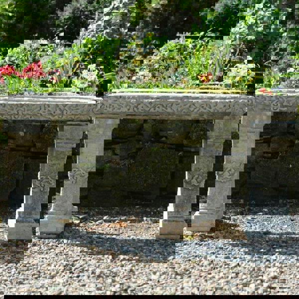 Exquisitely detailed, uniquely designed stone cast outdoor bench is sure to bring a fabulous atmosphere to your garden, patio or lawn. The design of the bench classical with Kazakh style patterns. This amazing garden bench has been made in the UK. It will give a classic and stylish look to your garden or patio. A lovely perch to sit and contemplate the beauty of your garden. Order online in the comfort of your home this outdoor garden bench.