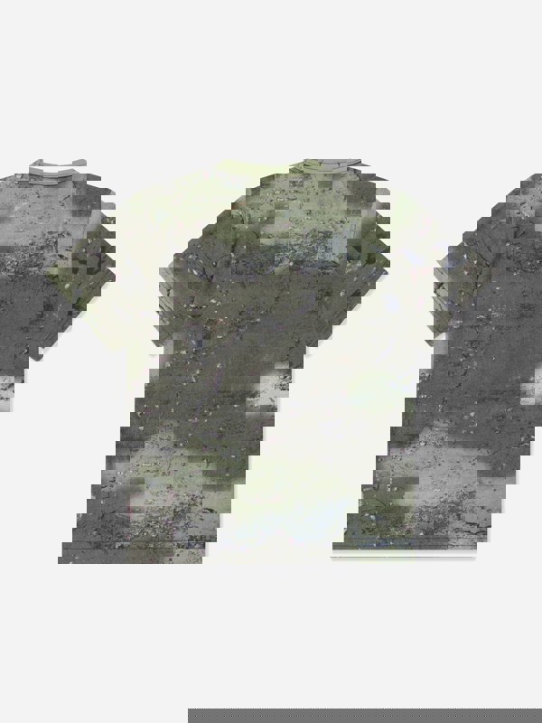 This boys marbled T-shirt in green from Stone Island Junior forms part of the AW2025 collection. It has a swirling marbled pattern in green, with each piece unique. A Stone Island badge with the iconic compass logo completes the look.