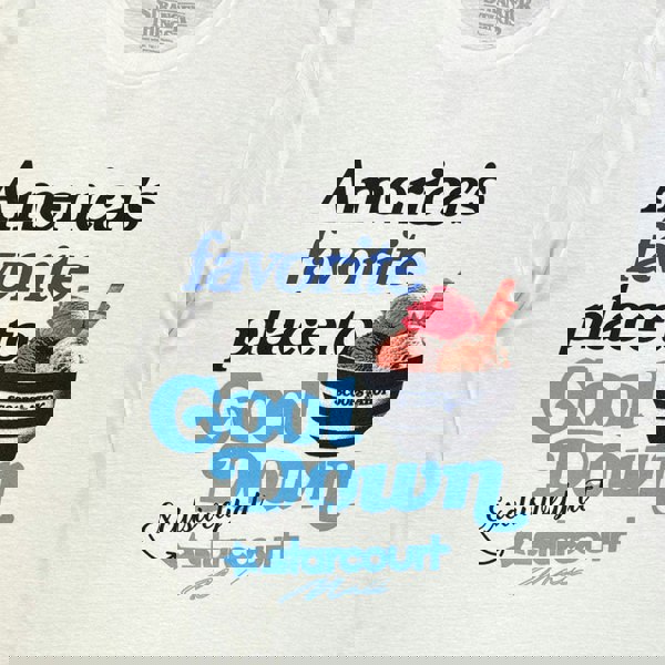 An official licensed Netflix T-Shirt featuring the Stranger Things - Ahoy Gool Down design motif. This high quality unisex tee is available in white colourway. Comes in a wide range of sizes from Small through XX-Large, subject to availability.