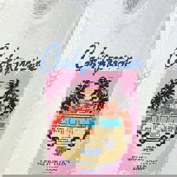 An official licensed Netflix T-Shirt featuring the Stranger Things - California design motif. This high quality unisex tee is available in white colourway. Comes in a wide range of sizes from Small through XX-Large, subject to availability.