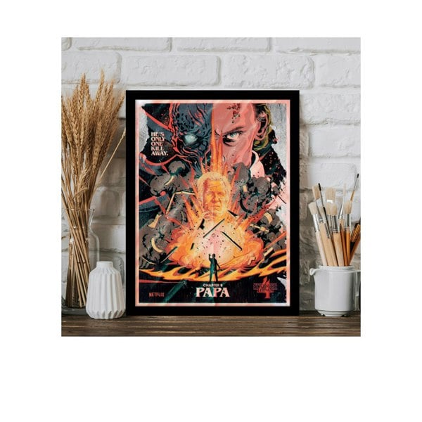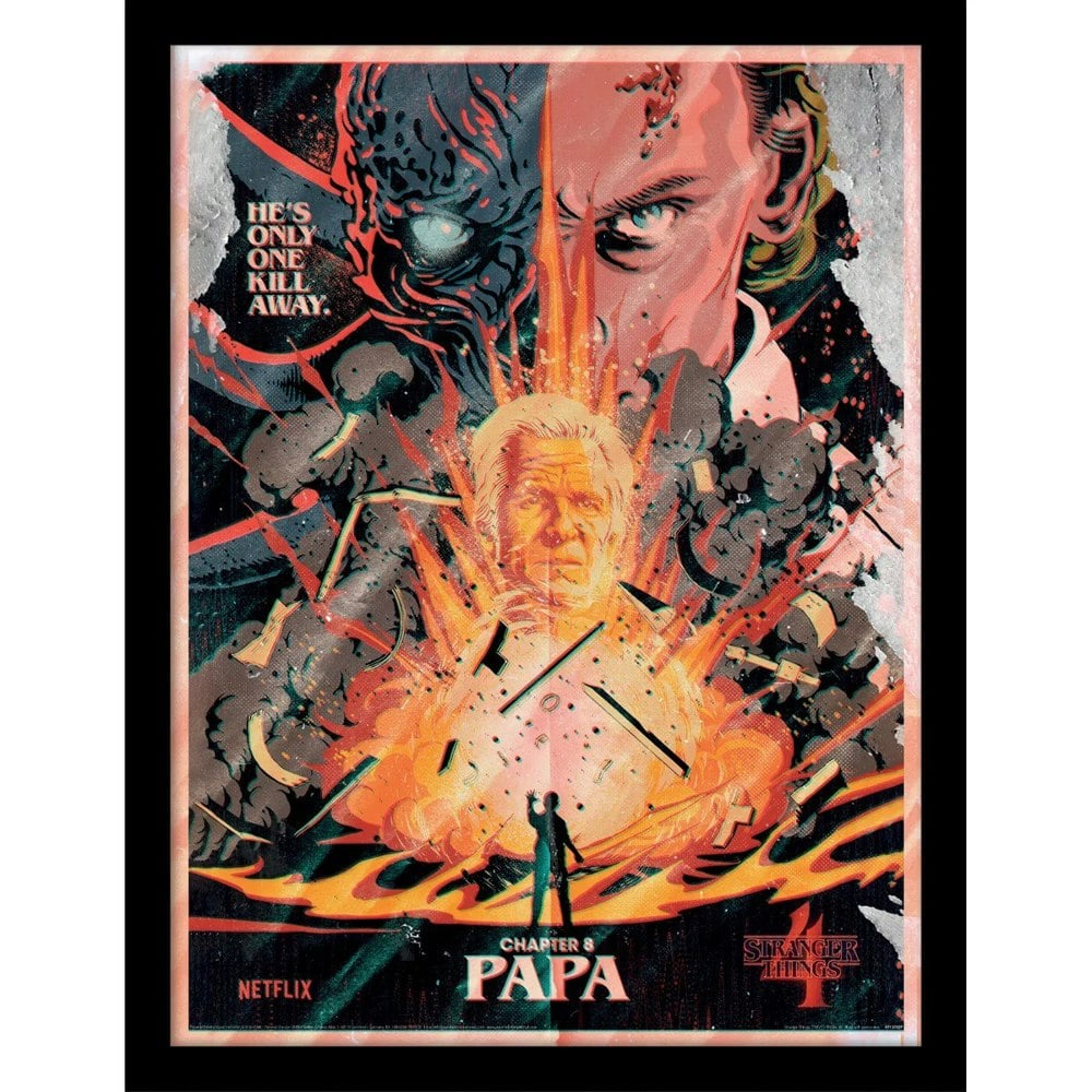 Bring a bold, graphic finish to your space with the Stranger Things Chapter 8 Papa Print. Featuring a printed text design, this officially licensed piece is an easy way to add a distinctive pop of colour to a room, whether you style it in a hallway, bedroom or home office.