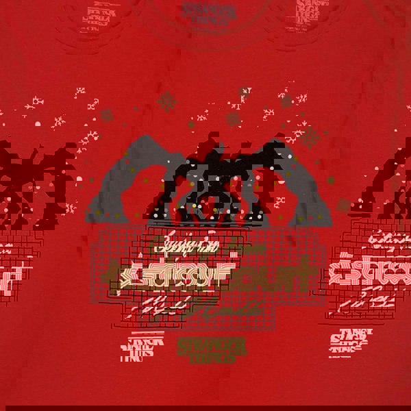 An official licensed Netflix T-Shirt featuring the Stranger Things - Greetings From Starcourt design motif. Christmas. Guarantees a Rockin' Christmas!.