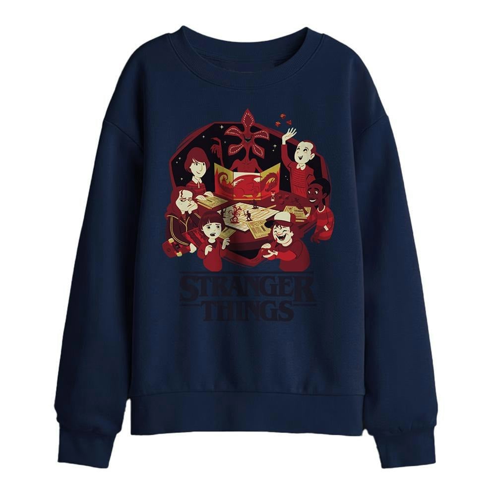 This kids’ Stranger Things Board Game sweatshirt comes in navy with a printed design. Made from a 50% cotton and 50% polyester blend, it uses midweight fabric with breathable technology.