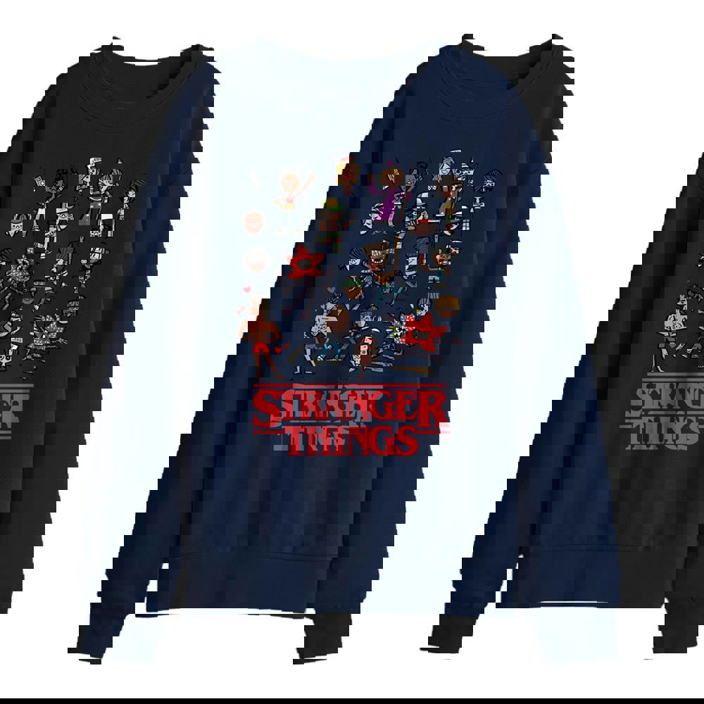 This kids’ Stranger Things sweatshirt comes in navy with a printed cartoon character design. Made from a 50% cotton and 50% polyester blend, it uses a midweight fabric with breathable technology. The crew neck and pull-over style keep the finish clean and simple, while fitted cuffs and a fitted hem give a neat outline.