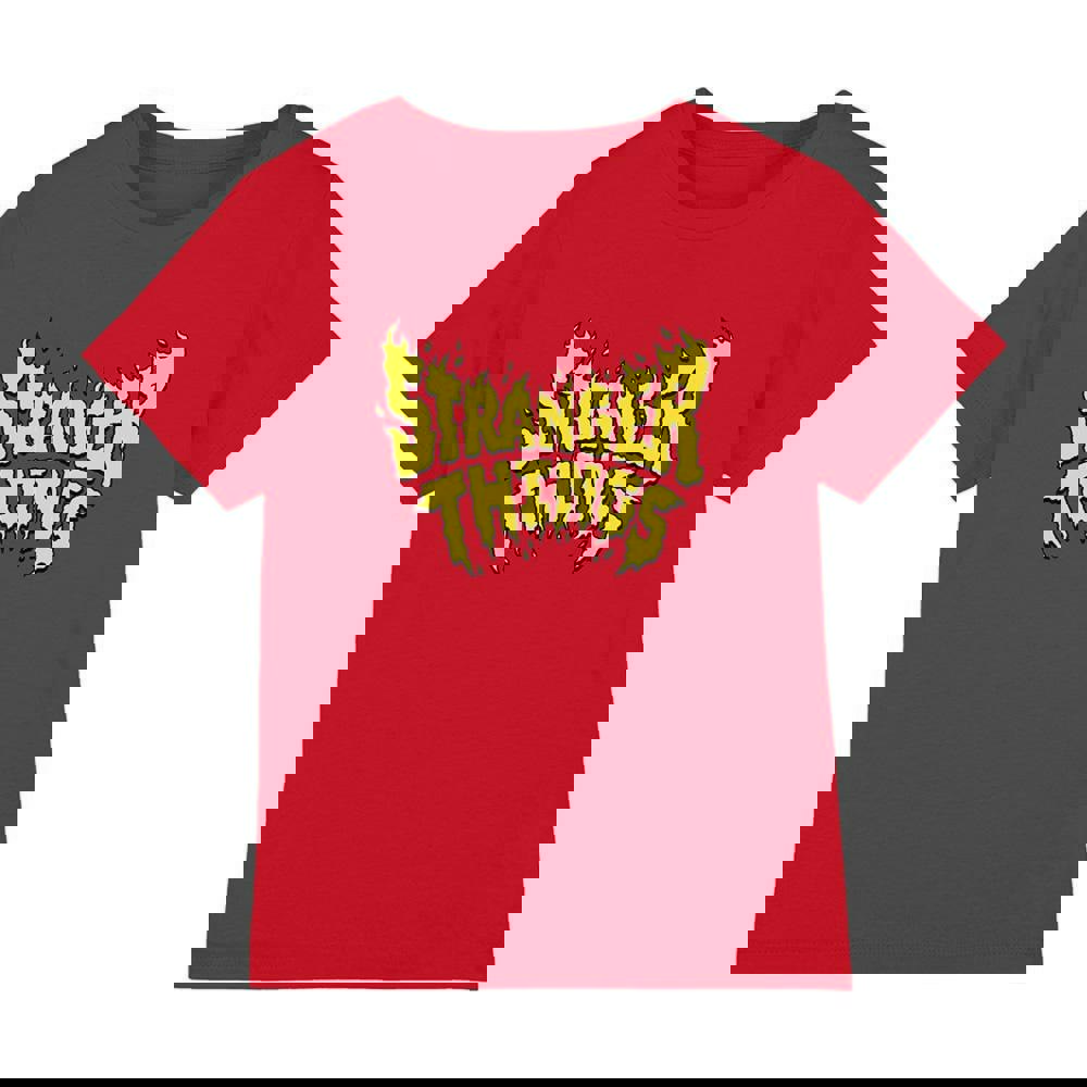 Bring a bold touch to everyday outfits with the Stranger Things Kids Flame Logo T-Shirt. Designed for casual wear, this short-sleeved tee features a printed flame logo design and a classic crew neckline for an easy, familiar fit.