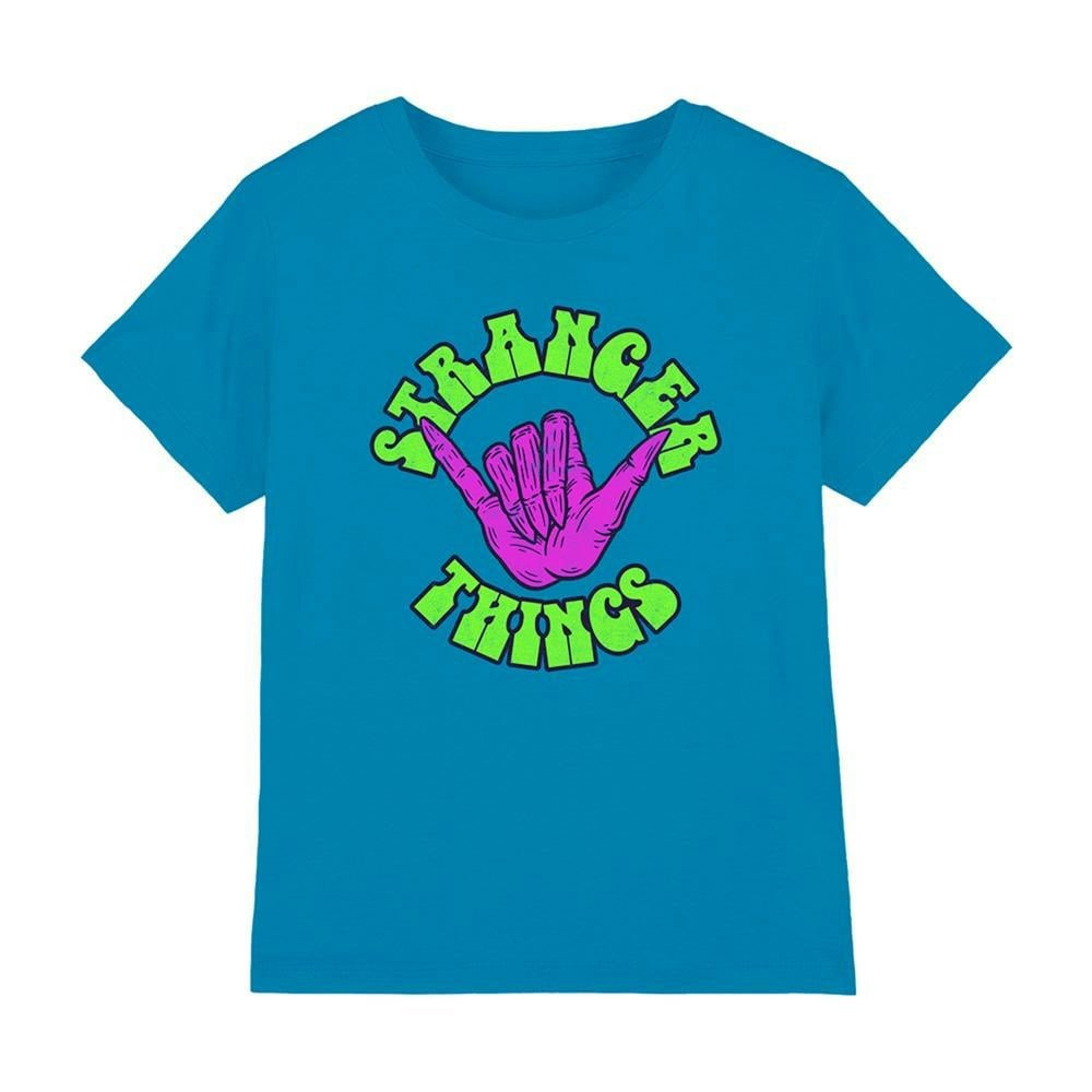 The Stranger Things Kids Hang 10 Hand T-Shirt is a printed, officially licensed design made for everyday wear. Finished in turquoise, it offers a simple, easy-to-style look that works well for school days, weekends and relaxed time at home.