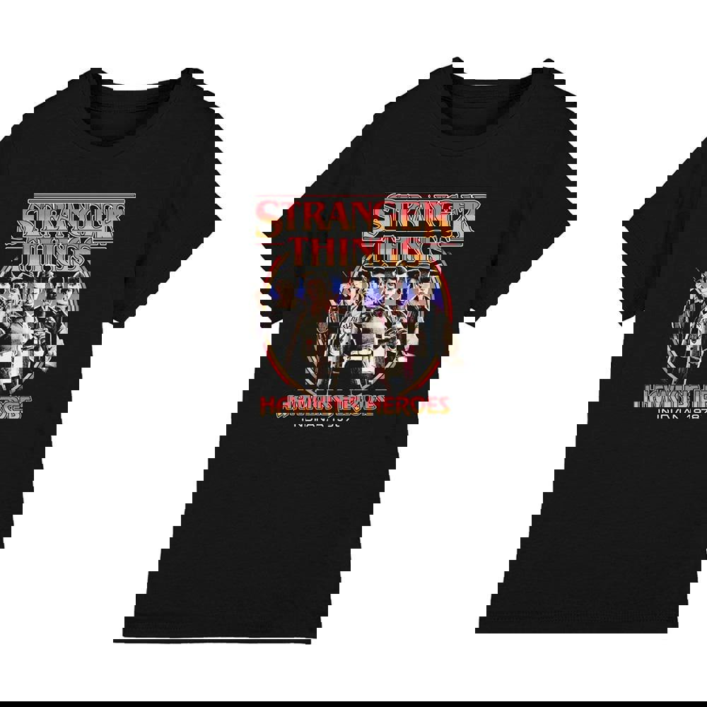 The Stranger Things Kids Hawkins Heroes Group 1987 T-Shirt is a printed, officially licensed design made for everyday wear. Finished in black, it’s an easy option for casual outfits and can be worn on its own or layered under a hoodie or jacket.