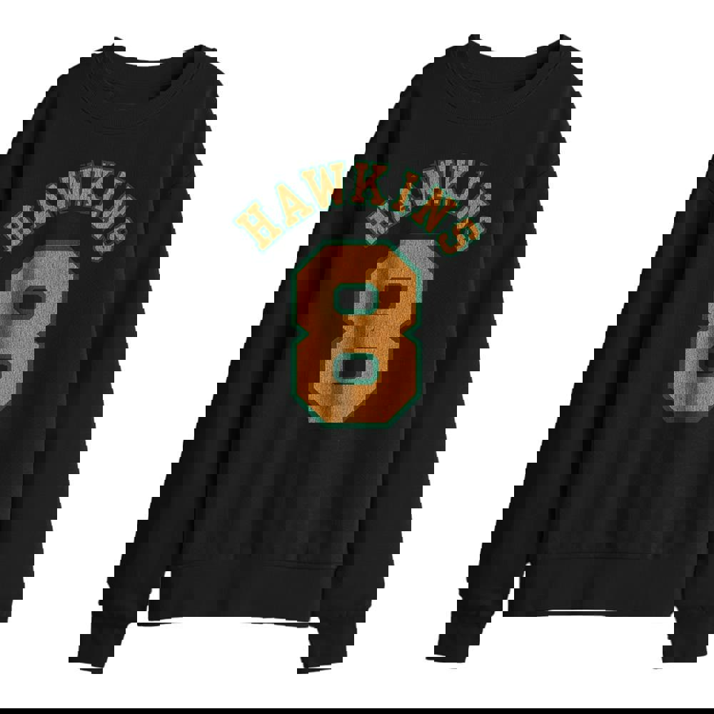 This kids’ Stranger Things Hawkins No 8 sweatshirt comes in black with a printed design. Made from a 50% cotton and 50% polyester blend, it uses a midweight fabric with breathable technology. The crew neck and pull over fastening keep the finish simple and easy to wear.