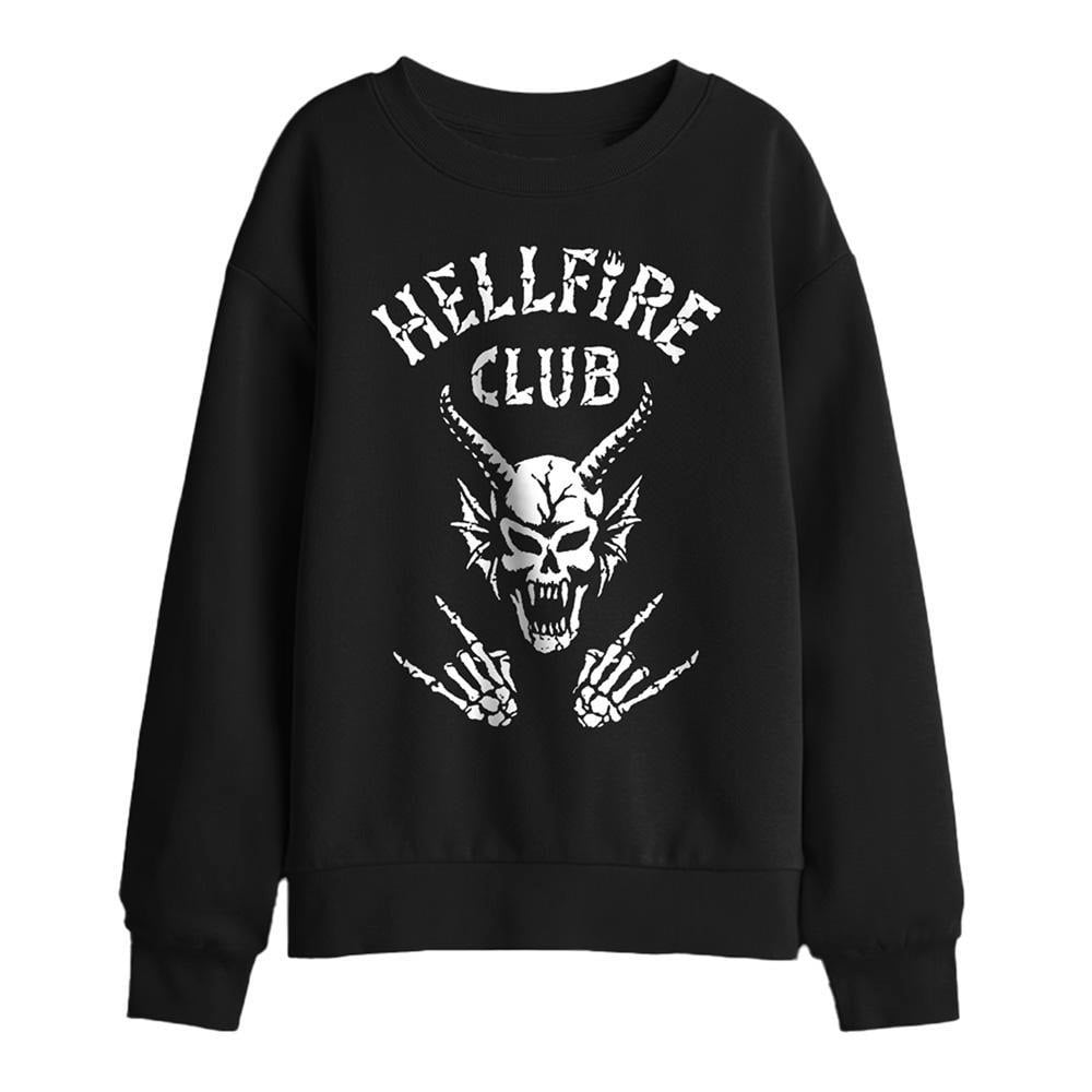 This kids’ Stranger Things Hellfire Club Bones sweatshirt comes in black with a printed design. Made from a 50% cotton and 50% polyester blend, it uses midweight fabric with breathable technology. A crew neck and pull-over fastening keep the finish simple and easy to wear.