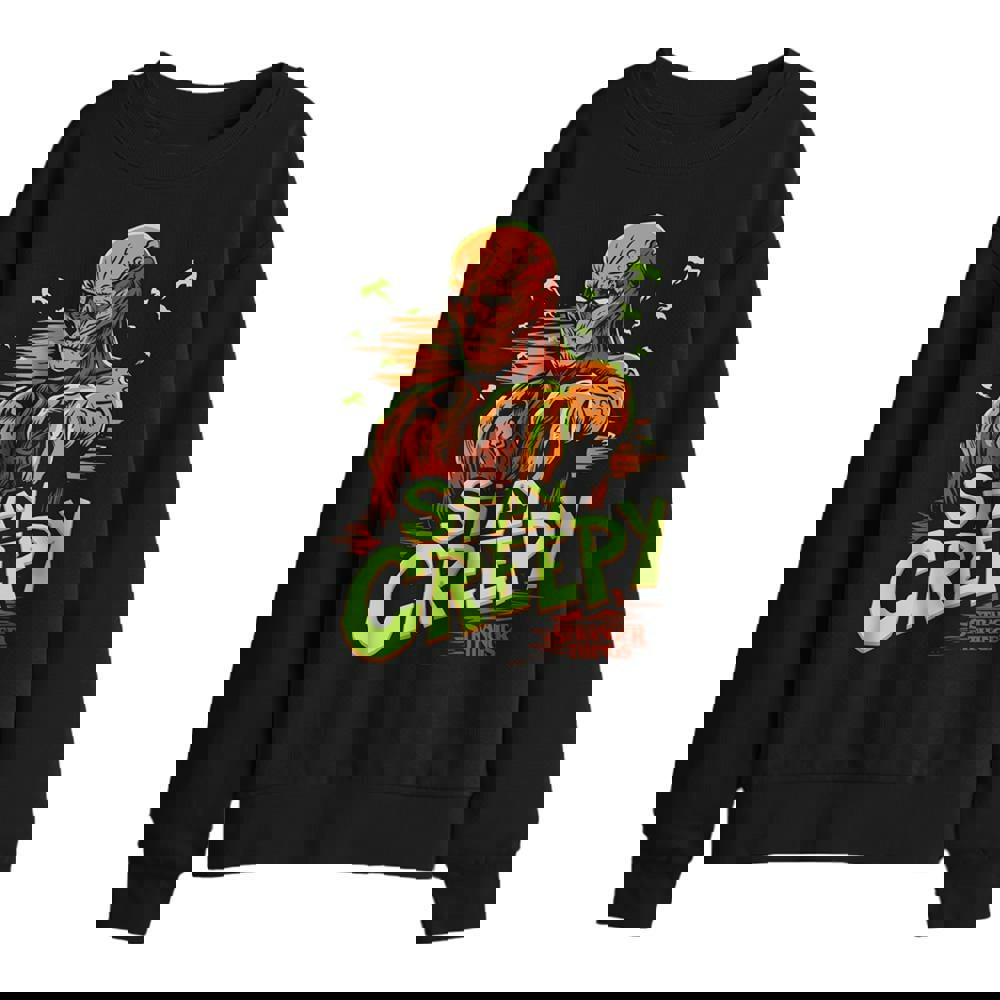 This kids’ Stranger Things sweatshirt comes in black with a printed design and an officially licensed finish. Made from a 50% cotton and 50% polyester blend, it uses a midweight woven fabric with breathable technology. A crew neck and pull over fastening keep the look simple and easy to wear.