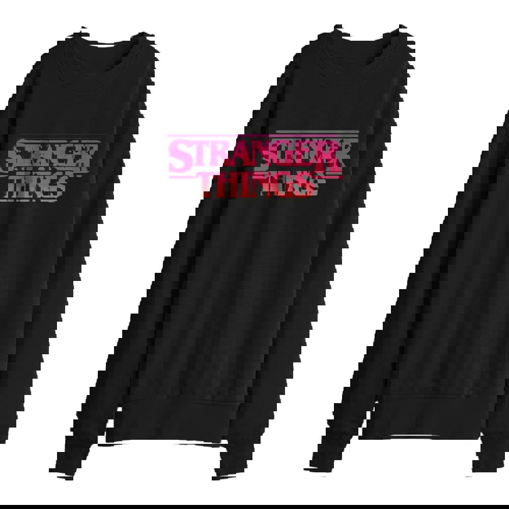 This kids’ Stranger Things sweatshirt comes in black with a printed sunset logo design. Made from a 50% cotton and 50% polyester blend, it uses a midweight fabric with breathable technology. The crew neck shape and pull over fastening keep the finish simple and easy to wear.