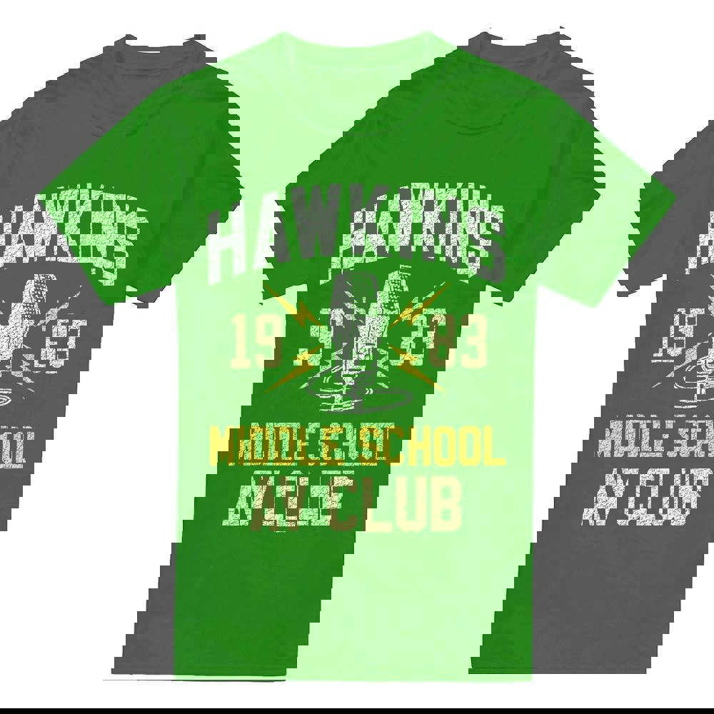The Stranger Things Mens Hawkins Middle School T-Shirt is an officially licensed style designed for everyday wear. Finished in kelly green, it features a printed design that brings a distinctive look to casual outfits.