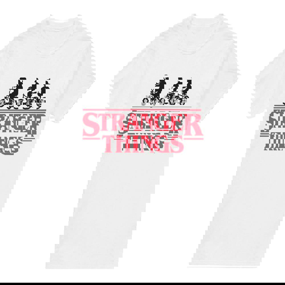 The Stranger Things Mens Silhouette Bike Logo T-Shirt is a printed, officially licensed design for fans of the series. Finished in white, it offers an easy, everyday option that works well for casual wear, whether you are relaxing at home or heading out.