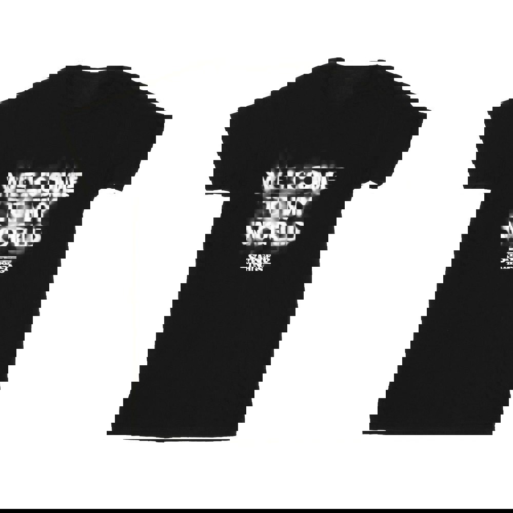 Bring a distinctive graphic finish to your everyday wardrobe with the Stranger Things Mens Welcome To My World Cotton T-Shirt in black. Designed with a crew neckline and short sleeves, it offers a clean, classic silhouette that’s easy to wear on its own or layered under casual pieces.