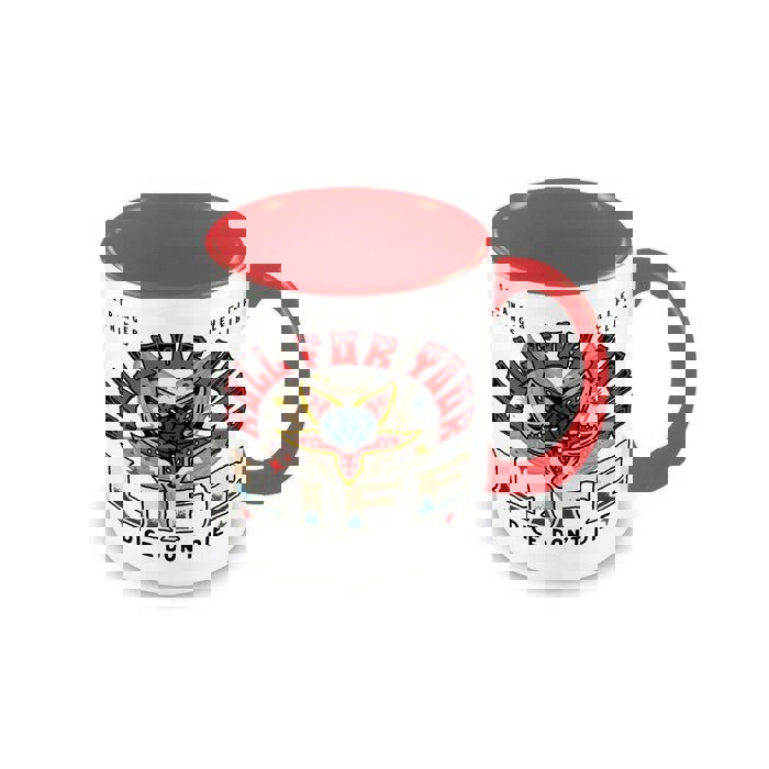 The Stranger Things Roll For Your Life Mug is a ceramic mug designed for everyday hot drinks at home or at your desk. Finished in white and red, it features a contrast handle and an inner two-tone design for a distinctive look as you sip.