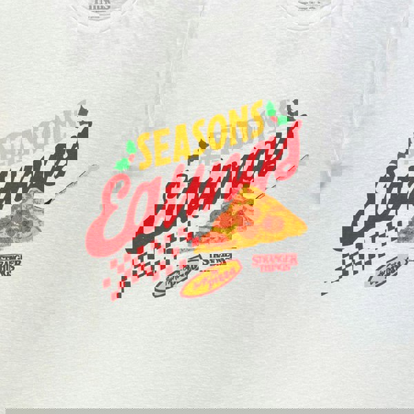 An official licensed Netflix T-Shirt featuring the Stranger Things - Season Of Eating Pizza design motif. Christmas. Merch Guarantees a Rockin' Christmas!.