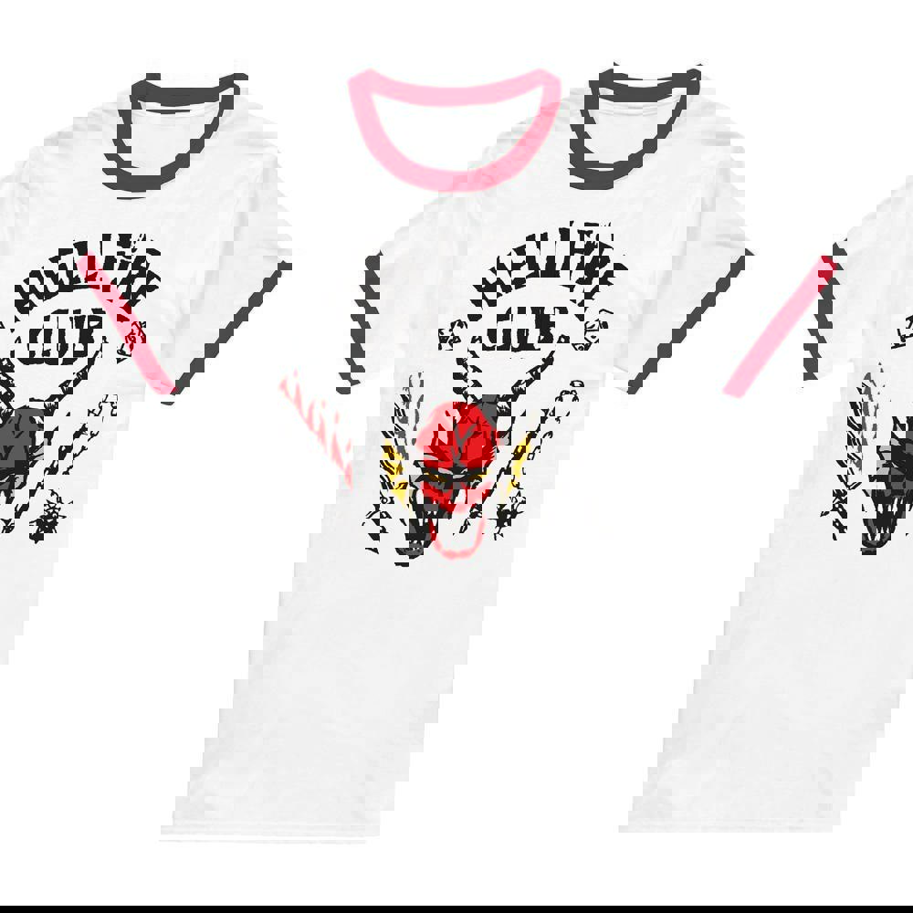 The Stranger Things Unisex Adult Hellfire Club T-Shirt is a short-sleeved style designed for everyday wear. Finished in red, it features a printed design that brings a bold look to casual outfits.