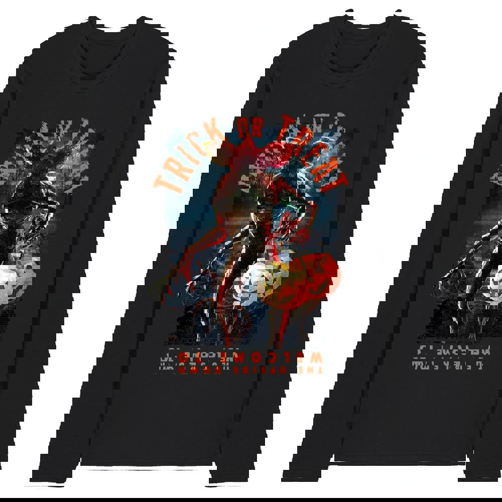 Bring a bold Stranger Things look to everyday dressing with the officially licensed Trick Or Treat Demogorgon long-sleeved T-Shirt. Designed for unisex adult wear, it’s an easy choice for relaxed styling at home or when you’re out and about, with a printed Demogorgon character design that stands out against the black finish.