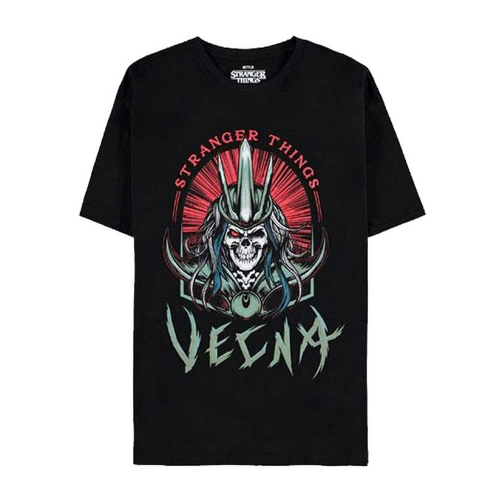 The Stranger Things Unisex Adult Vecna Skull T-Shirt is an officially licensed design, created for fans who want an easy, everyday piece to wear. Finished in black, it features a printed graphic with a skull motif, alongside logo and text details, centred around the character Vecna.