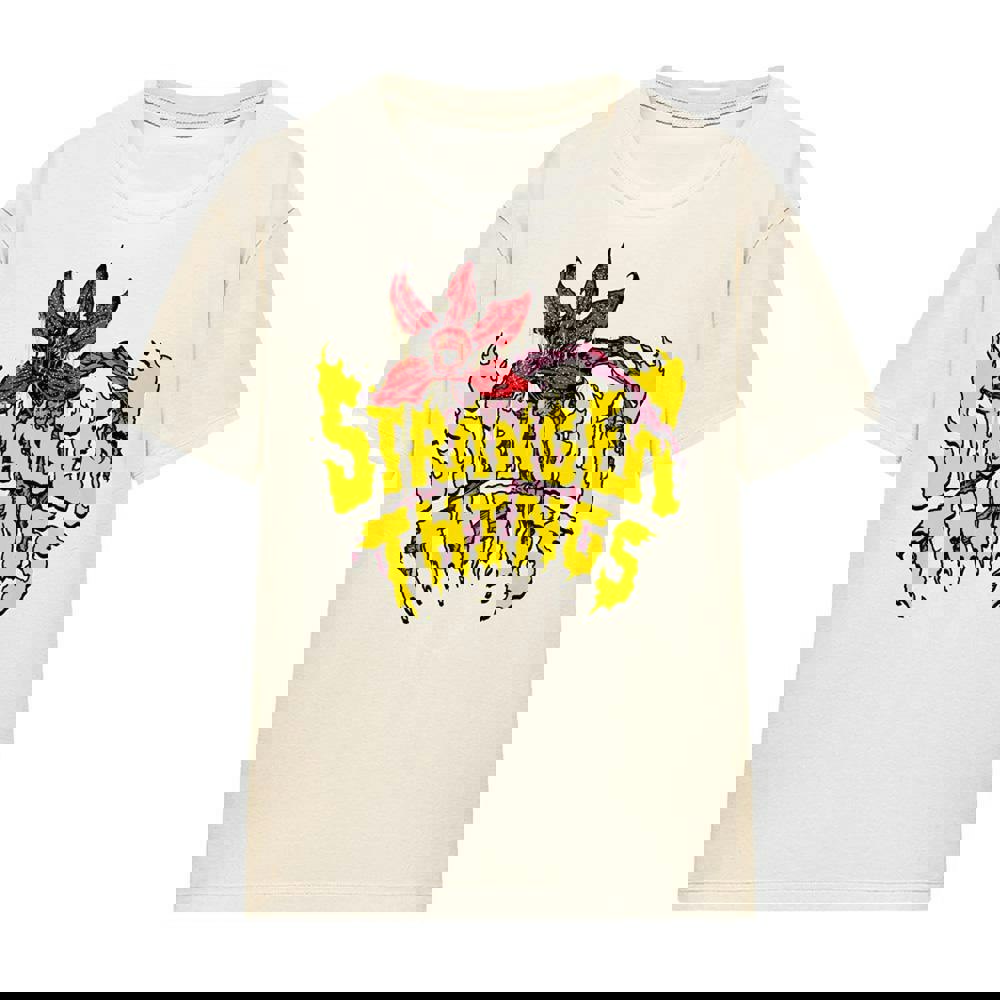 Bring a bold, character-led look to your everyday wardrobe with the Stranger Things Womens Demogorgon Flames T-Shirt in Natural. Featuring a printed Demogorgon design, this short-sleeved style is an easy choice for casual outfits, whether you are dressing for relaxed days at home or heading out with friends.